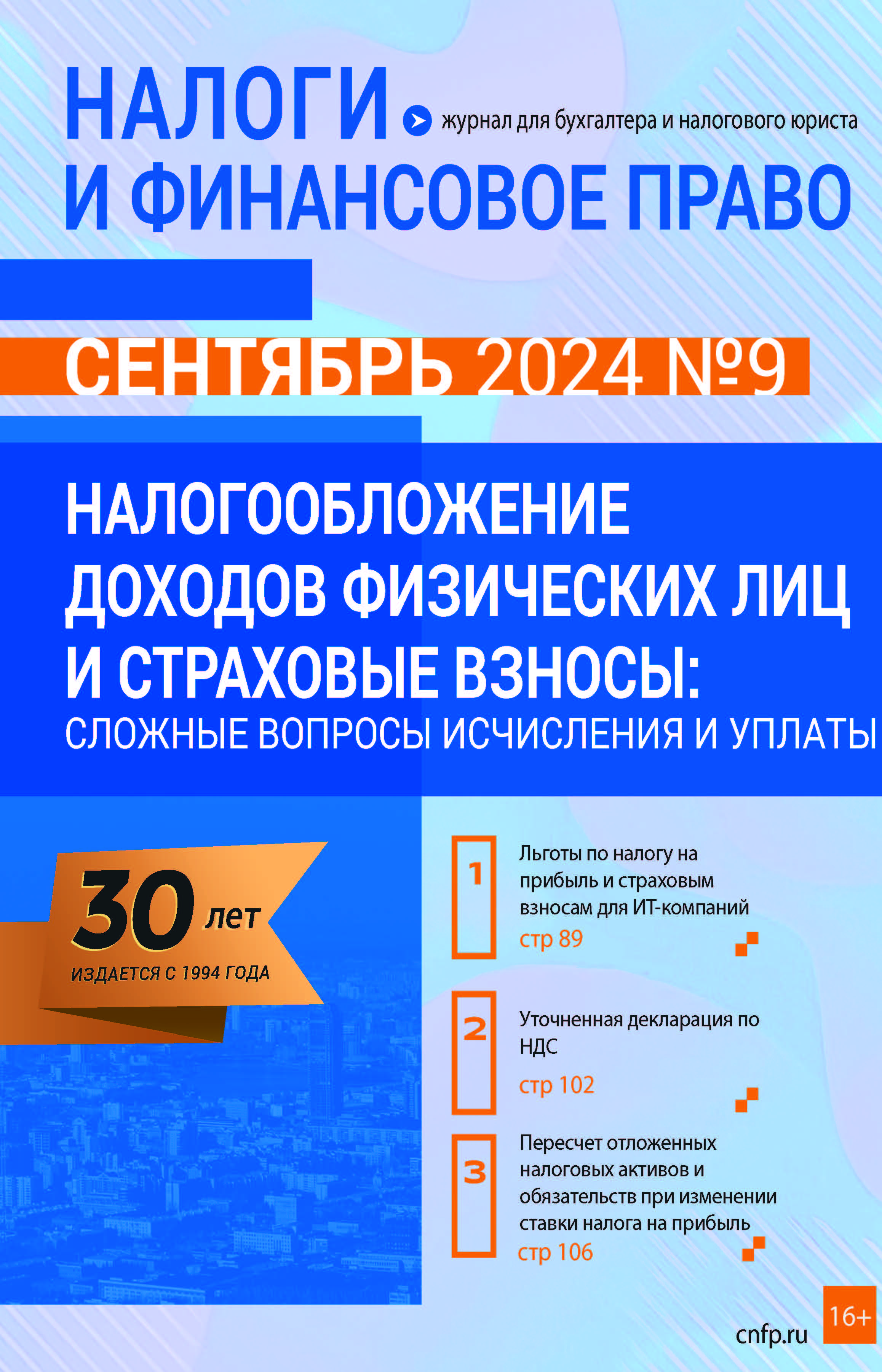 Новый номер журнала №09/2024: «Налогообложение доходов физических лиц и страховые взносы: сложные вопросы исчисления и уплаты»