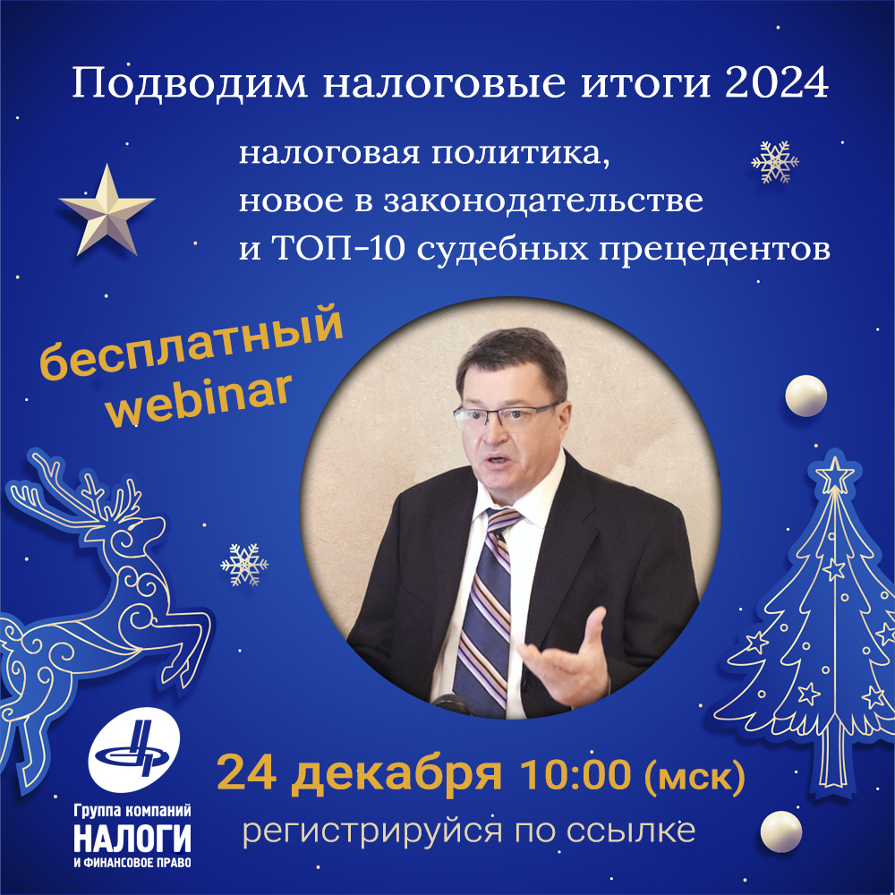 24 декабря состоится вебинар А.В. Брызгалина: Подводим налоговые итоги 2024 года
