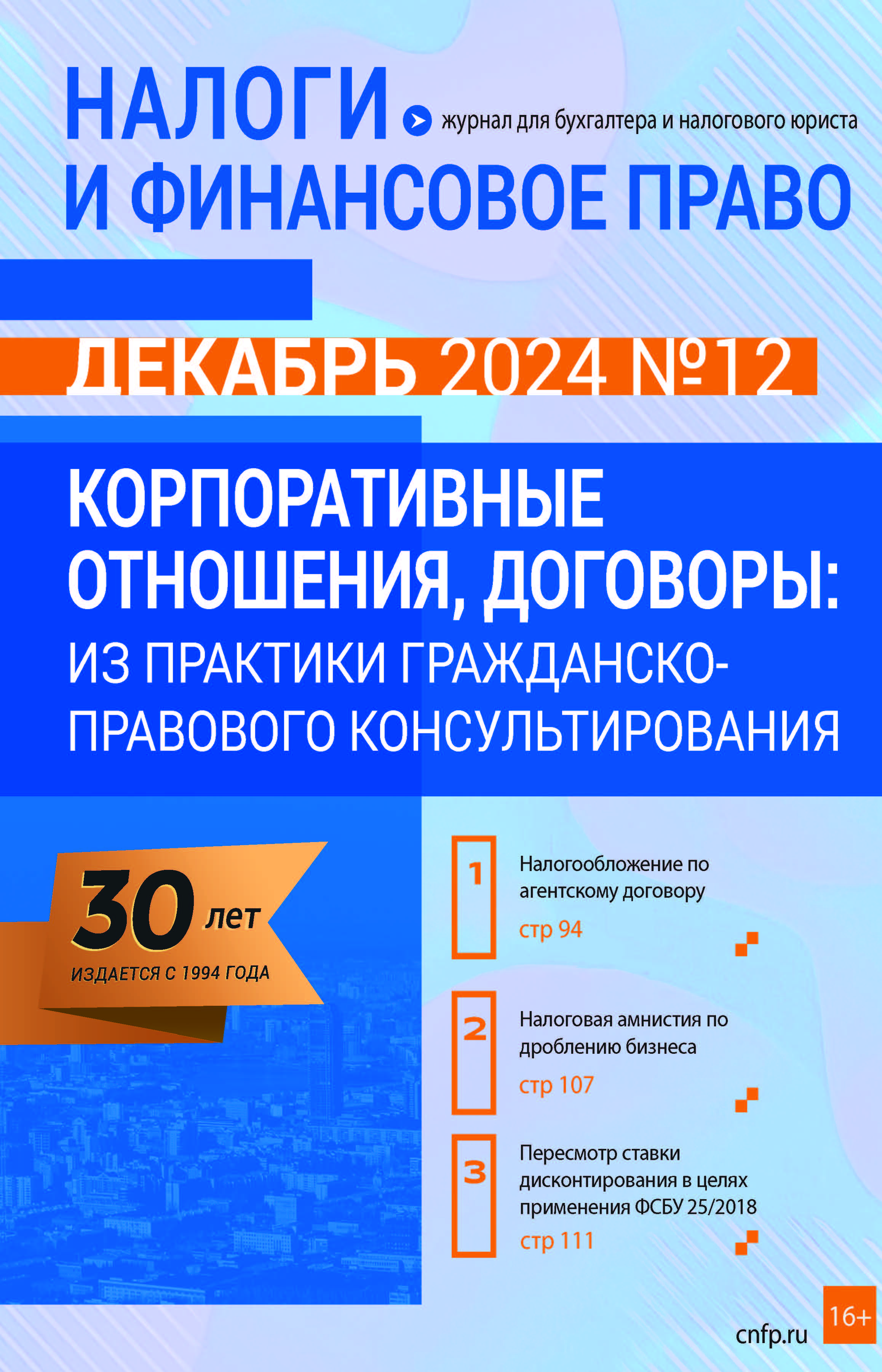Новый номер журнала №12/2024. «Корпоративные отношения, договоры: из практики гражданско-правового консультирования»
