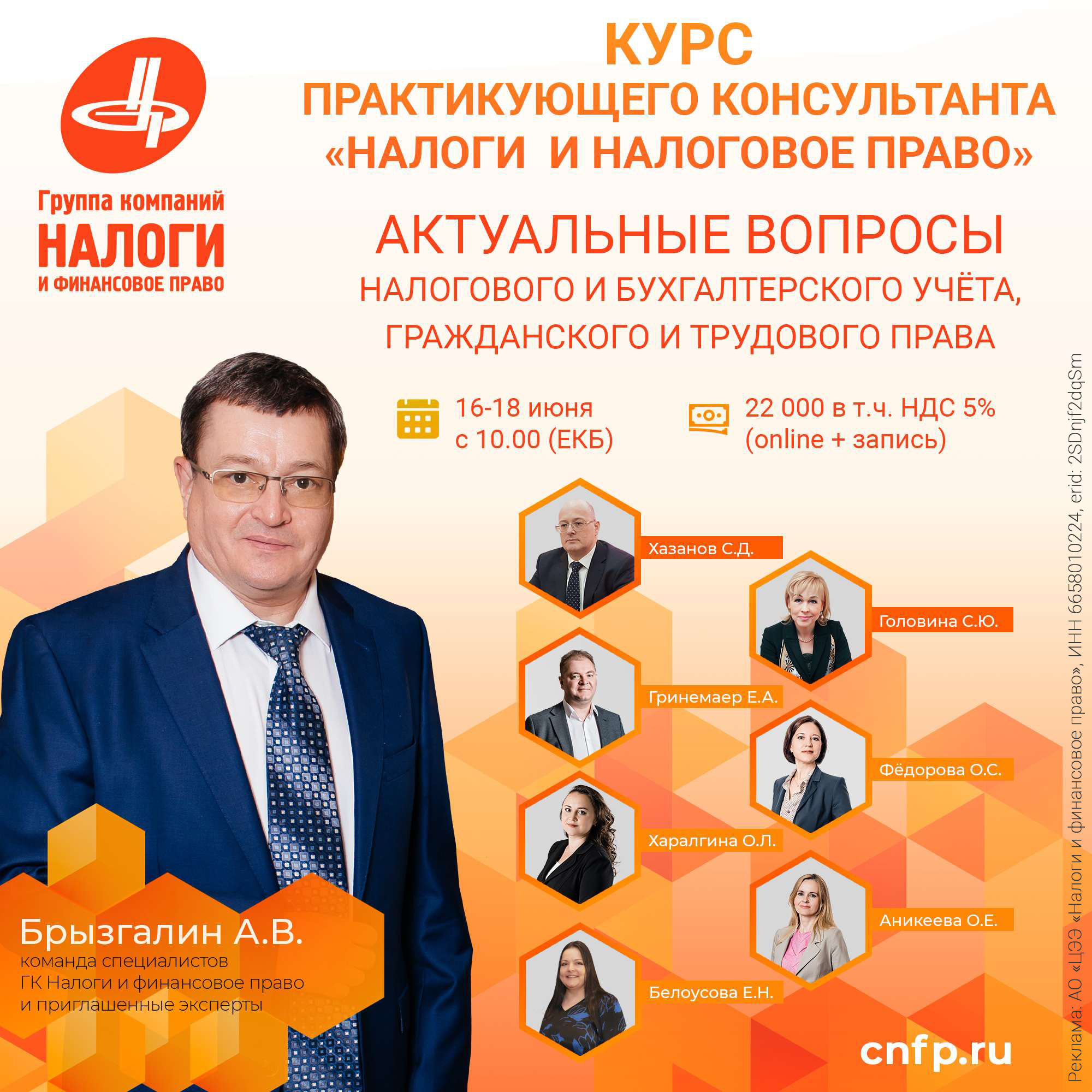 Коллеги, 16 июня стартует летний Курс практикующего консультанта: «Налоги и налоговое право»: Актуальные вопросы налогового и бухгалтерского учёта, гражданского и трудового права 2025.