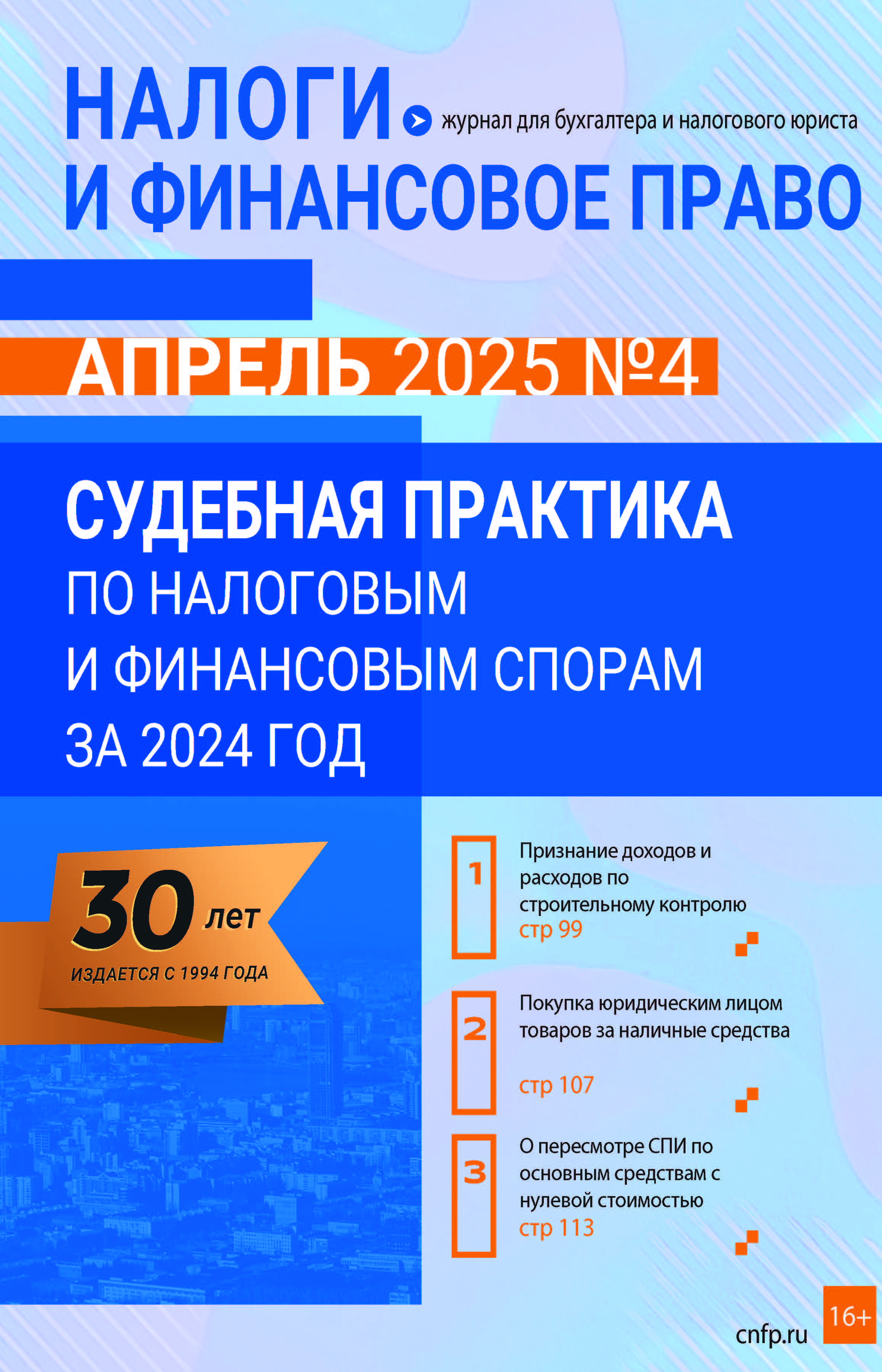 Новый номер журнала №04/2025: «Судебная практика по налоговым и финансовым спорам. 2024 год»