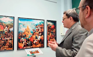 Справка: «13 ПРИНЦИПОВ НАЛОГООБЛОЖЕНИЯ» - уникальная картина-триптих, созданная в 2024 году художницей Викторией Ломаковой с помощью искусственного интеллекта по авторской идее Аркадия Викторовича БРЫЗГАЛИНА. Работа выполнена в стиле Питера Брейгеля Старшего. Это третий экземпляр работы. Первый - в ГК «Налоги и финансовое право», второй - в Палате налоговых консультантов.