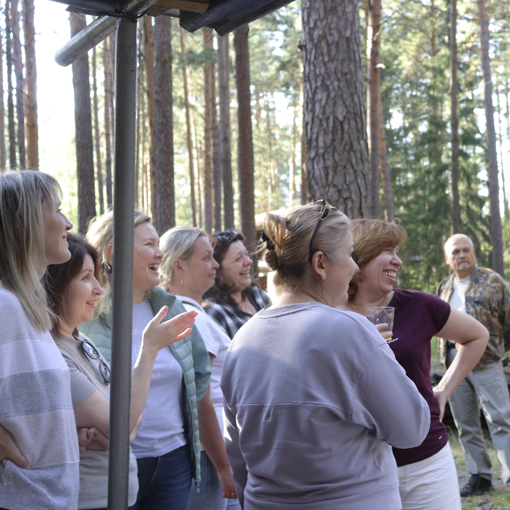 В этом году мы чествовали особо отличившихся коллег: Аркадий Викторович вручил им ценные призы и подарки. После официальной части каждый нашел дело по душе: настольные игры, волейбол, танцы и приятное общение с теми, кого давно не видел. Многие отправились на прогулку по живописному лесу к пирсу, где в этом году обновили настил.