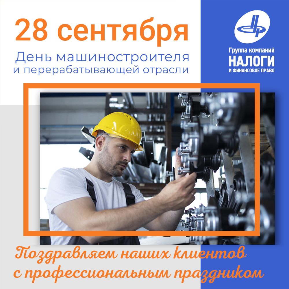 Группа Компаний «Налоги и финансовое право» гордится давними партнерскими связями с ведущими предприятиями, выражает искреннюю признательность всем работникам машиностроительной отрасли за ваш самоотверженный труд, верность профессии и неоценимый вклад в развитие промышленности.