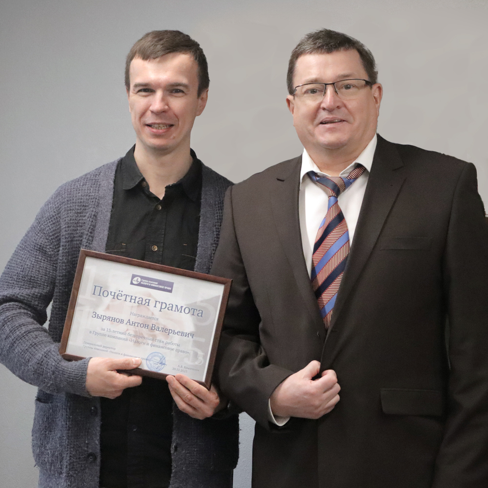 Сегодня в ГК «Налоги и финансовое право» мы с особым теплом чествуем Зырянова Антона Валерьевича. Ровно 15 лет назад, 30 ноября 2010 года, он стал частью нашей команды.