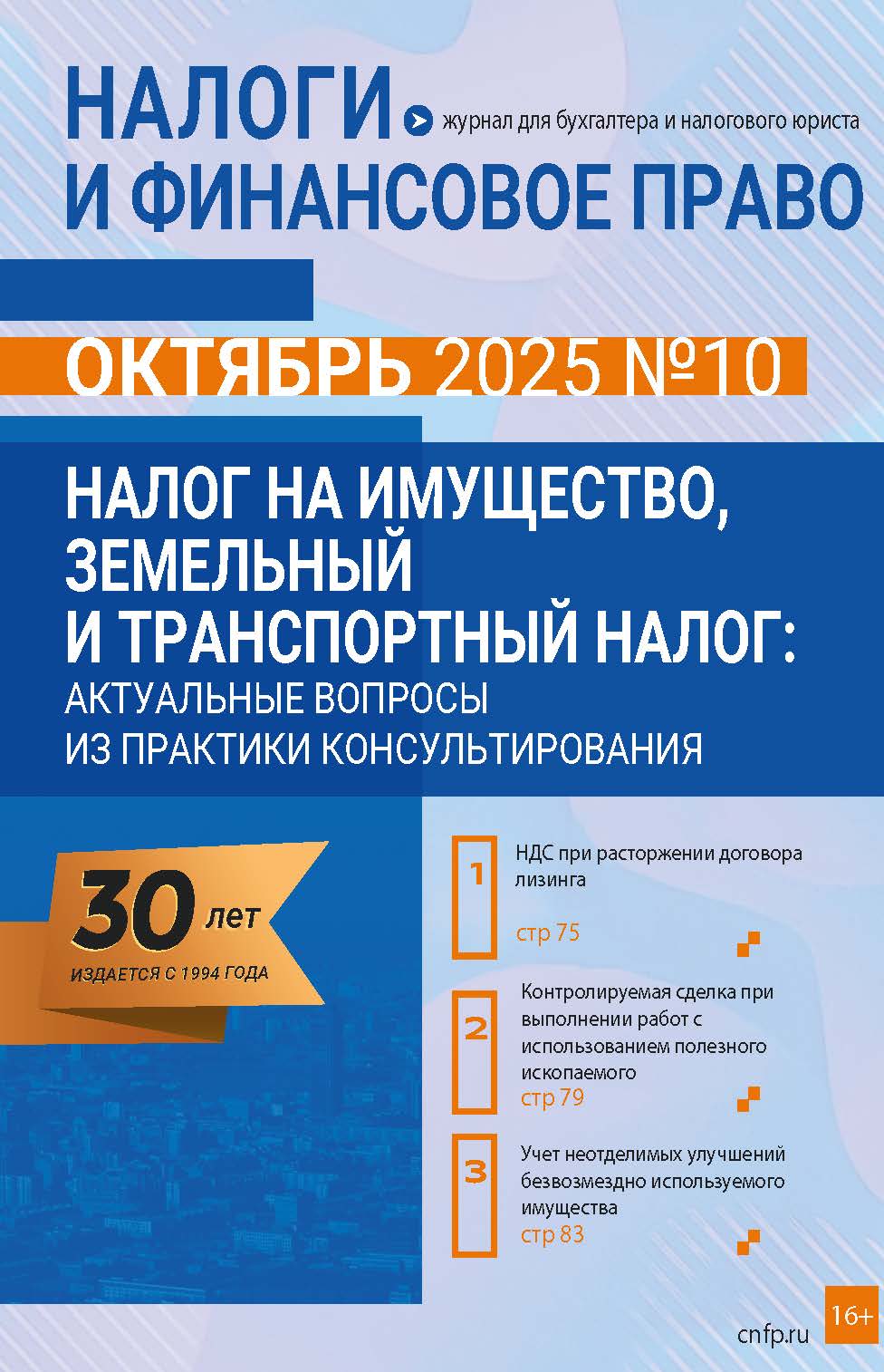 Новый номер журнала №10/2025. «Налог на имущество, земельный и транспортный налог: Актуальные вопросы из практики консультирования»