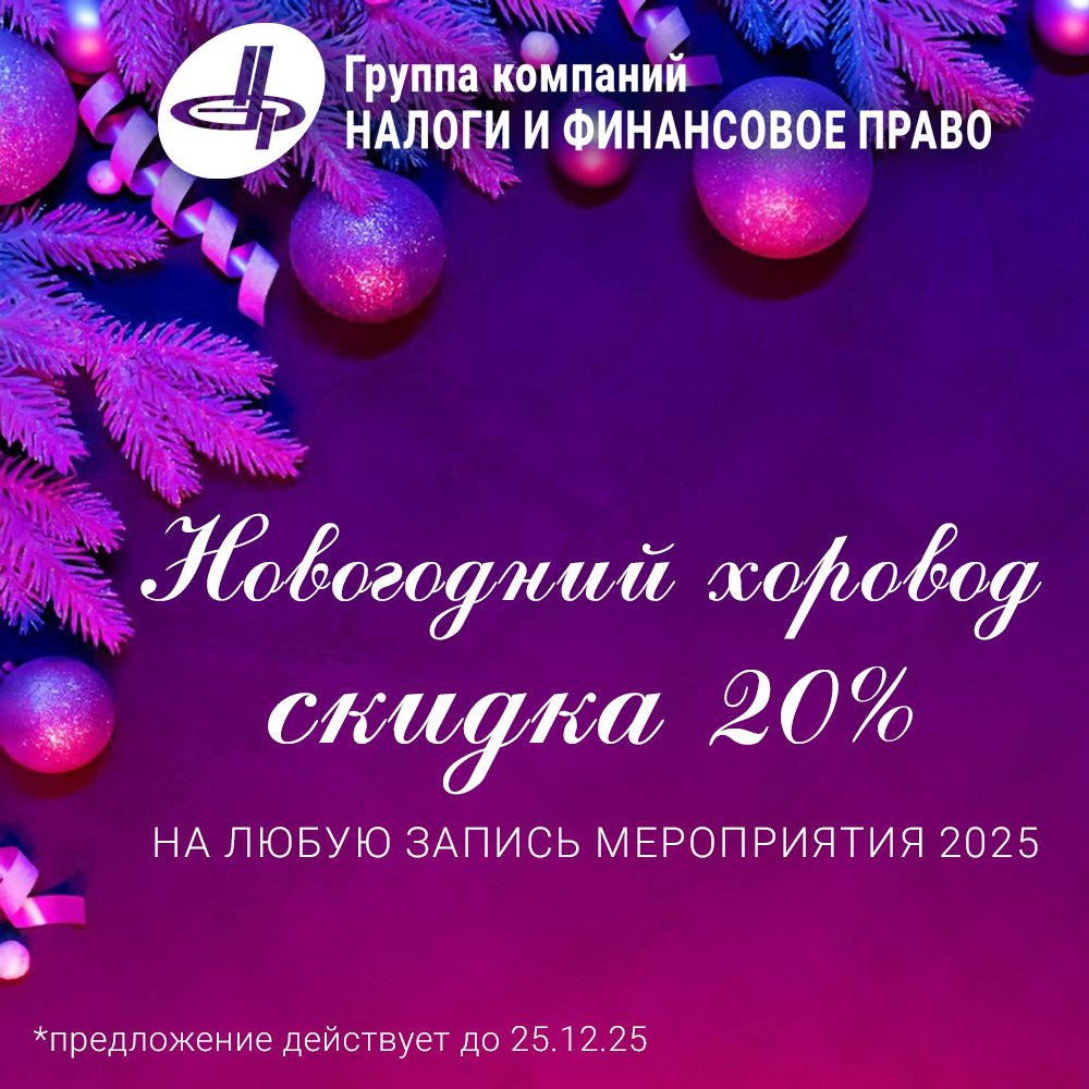 По традиции, до 25 декабря можно выбрать любую запись курса, серии или лекции, которые провели специалисты ГК «Налоги и финансовое право» в этом году и приобрести ее со скидкой 20%.