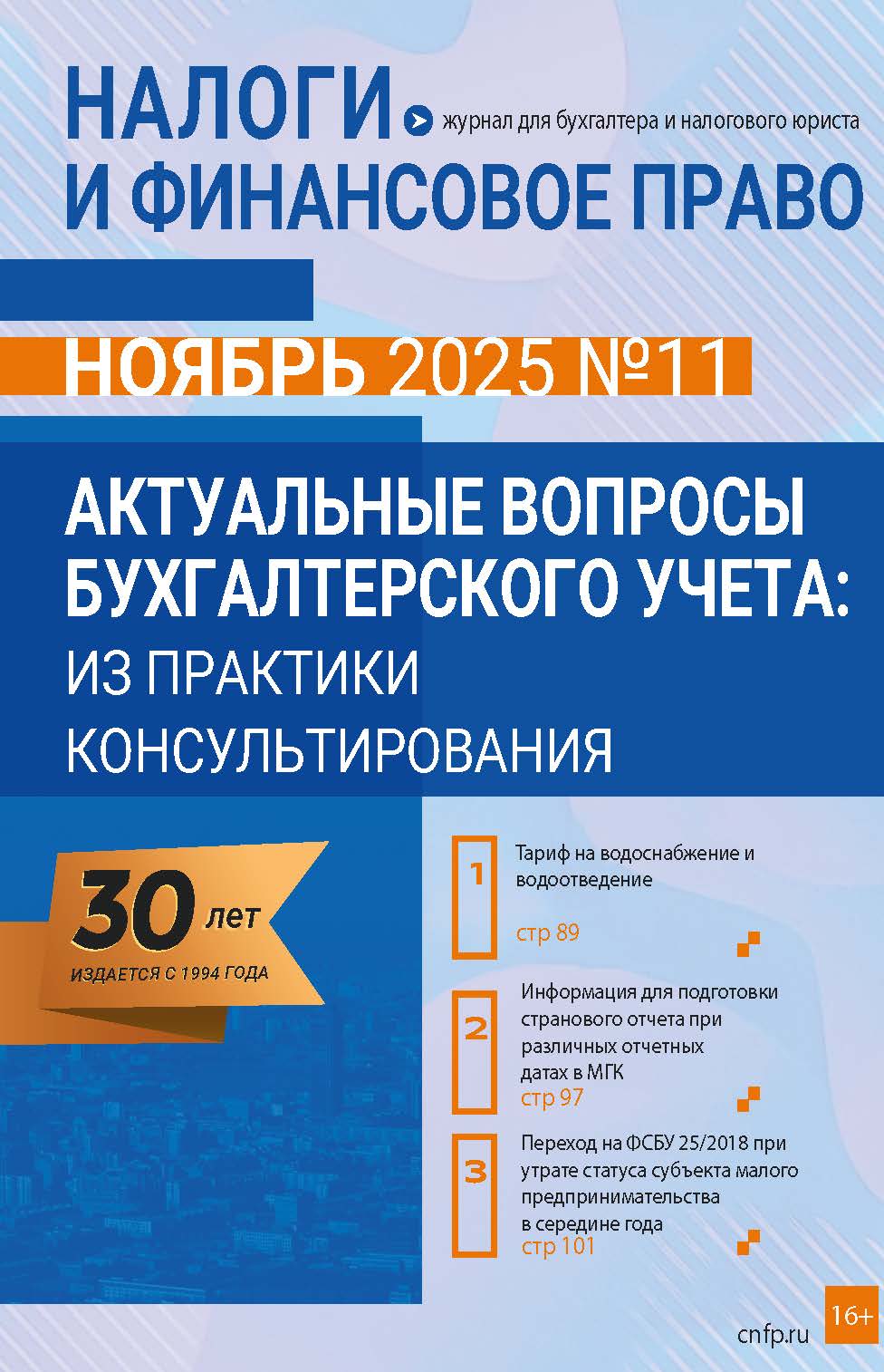 Новый номер журнала №11/2025. «Актуальные вопросы бухгалтерского учета: из практики консультирования»