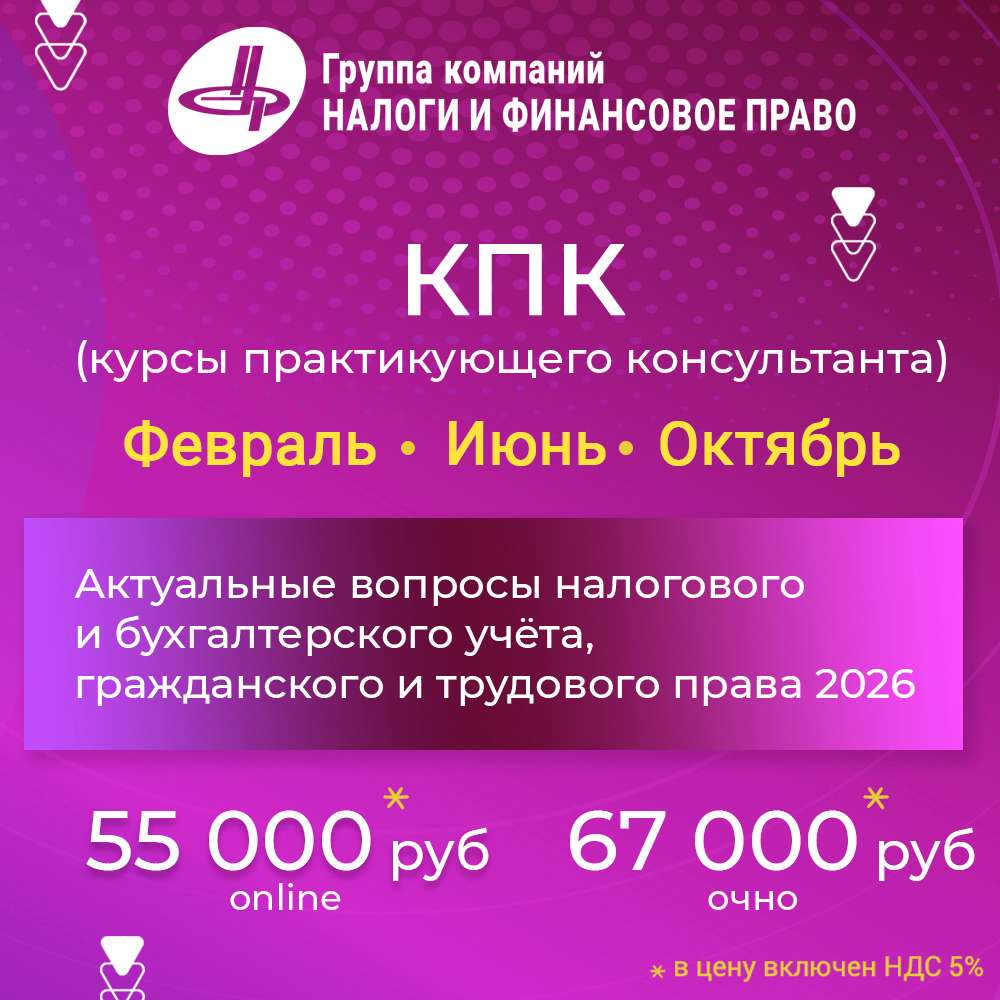 Выбрать другие мероприятия Группы компании «Налоги и финансовое право»: https://www.cnfp.ru/uchebnyy-centr/opisanie-meropriyatiy/Event-2026