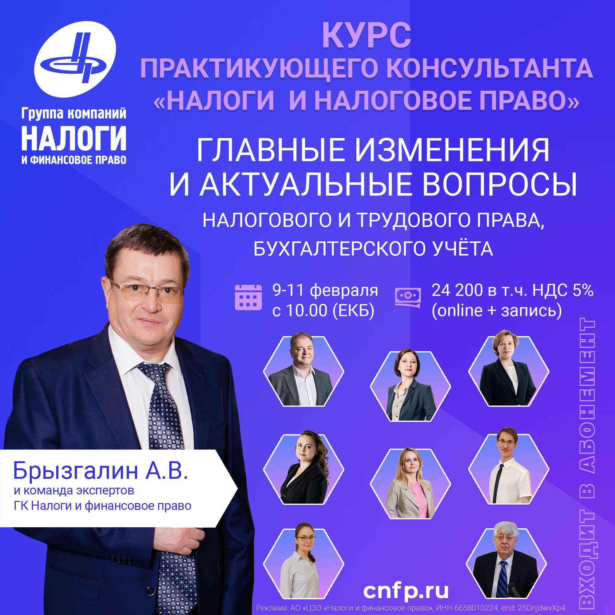 Приглашаем принять участие в зимнем Курсе практикующего консультанта (КПК): «Налоги и налоговое право»: Главные изменения и актуальные вопросы налогового и трудового права, бухгалтерского учёта.
