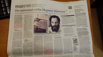 Статья в "Областной газете" (г.Екатеринбург): Ирина Клепикова "Он называл себя Маркос Шекоян" /16 декабря 2014/
