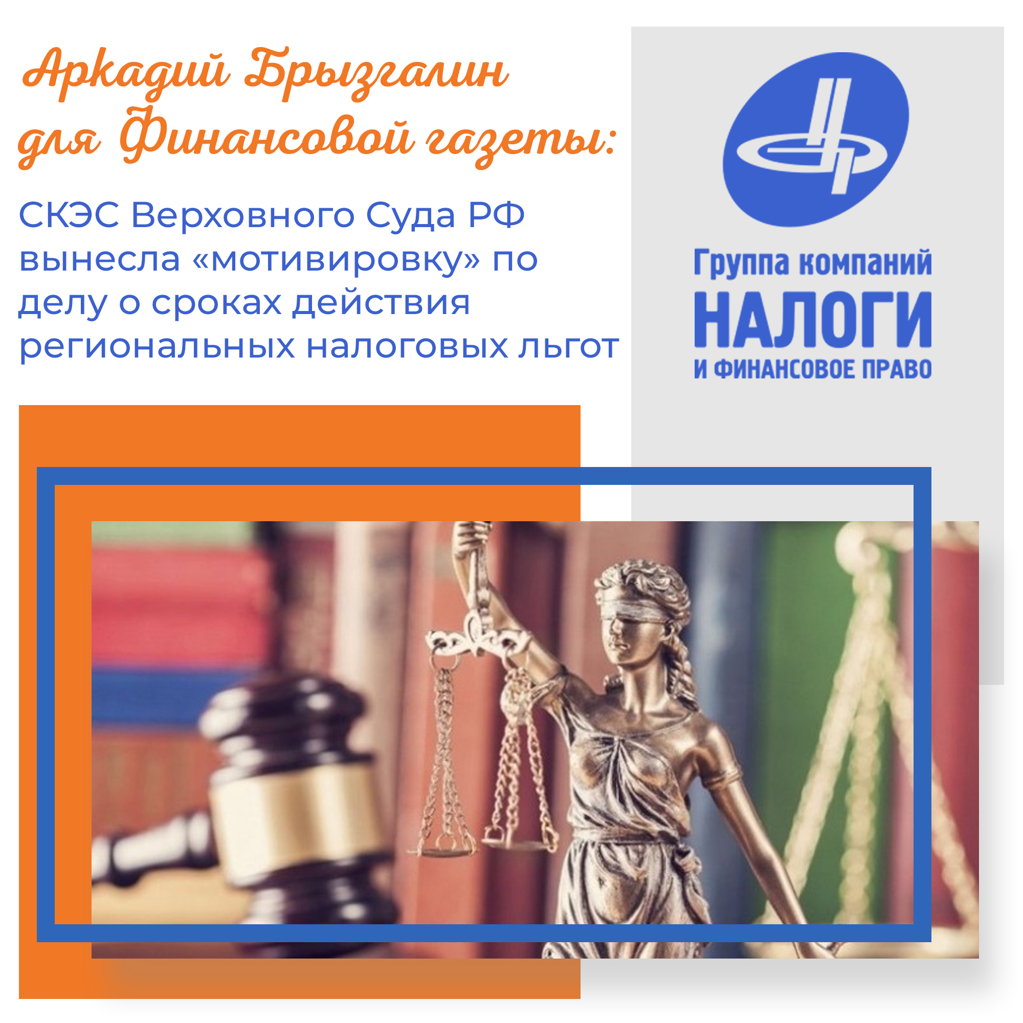 Статья Аркадия Брызгалина в Финансовой Газете: СКЭС Верховного Суда РФ вынесла «мотивировку» по делу о сроках действия региональных налоговых льгот.