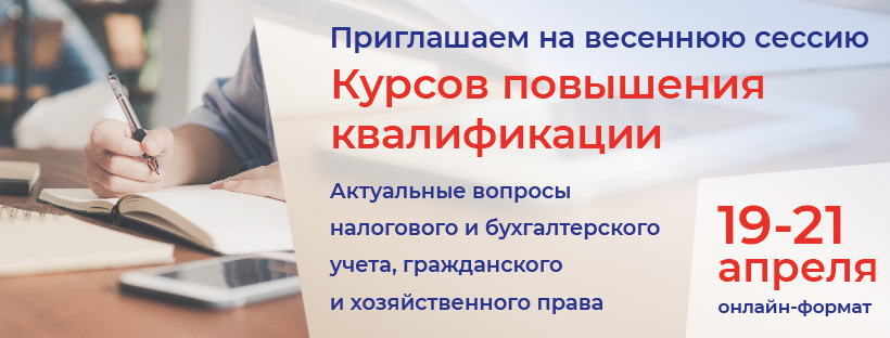 Группа компаний "Налоги и финансовое право" объявляет приглашает принять участие в весенние сессии Курса повышения квалификации "Налоги и налоговое право". В этой сессии будут рассматриваться самые актуальные вопросы налогового и бухгалтерского учёта, трудового, гражданского и хозяйственного права в период пандемии.
