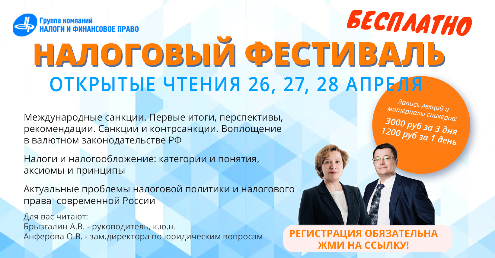 Однако…мы решили не сдаваться и провести 26, 27 и 28 апреля, взамен нашей Конференции, НАЛОГОВЫЙ ФЕСТИВАЛЬ, состоящий из ТРЕХ ОТКРЫТЫХ мероприятий для всех желающих.