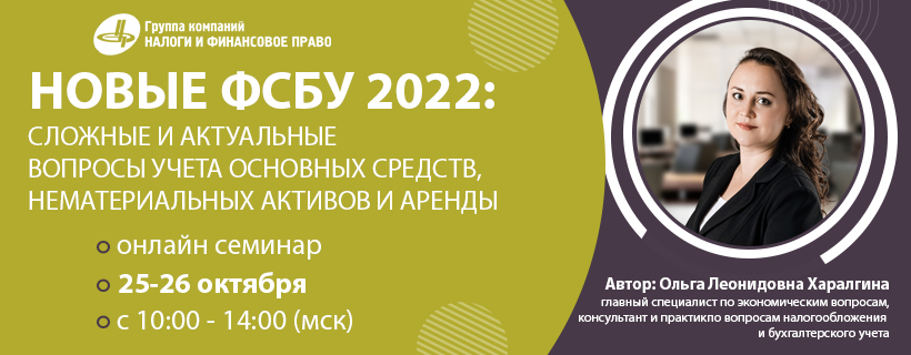 Группа компаний «Налоги и финансовое право» приглашает принять участие в осенней серии лекций Ольги Харалгиной: «ФСБУ 2022: сложные и актуальные вопросы учета основных средств, нематериальных активов и аренды»