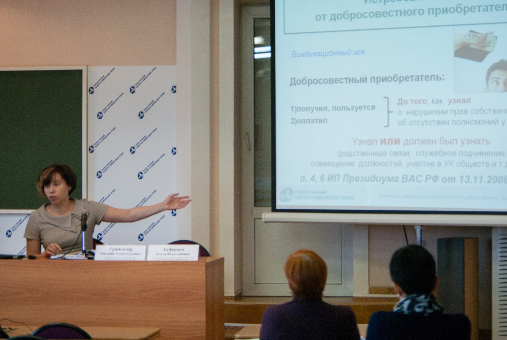 Евгений Александрович Гринемаер, первый заместитель генерального директора ГК «Налоги и финансовое право», разобрал вместе с участниками вопрос правового регулирования арендных отношений. Не обошлось и без актуальной судебной практики по данной категории дел.