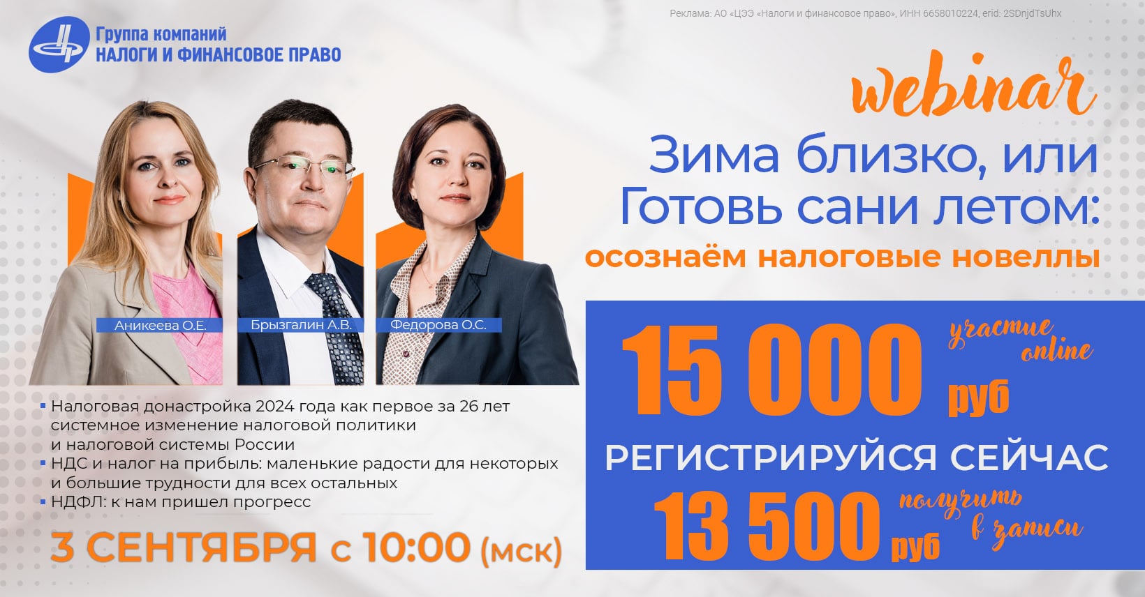 Реклама. АО «ЦЭЭ «Налоги и финансовое право», erid: 2SDnjdTsUhx